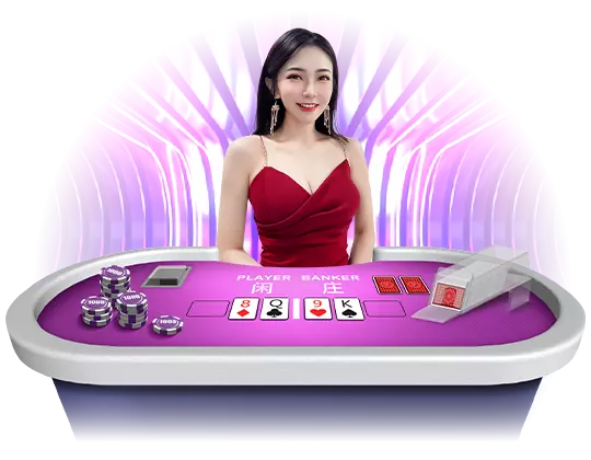 真人百家樂桌型介紹人物形象圖,用於襯托百家樂桌型說明內容